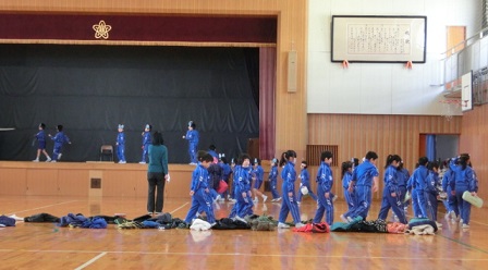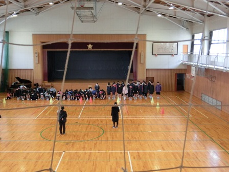 6年生を送る会が近づいてきました。特別時間割が先週から始まっていますが、いよいよ今週は仕上げに入るようです。体育館をのぞいて見ると・・・。4年生が練習をしていました。