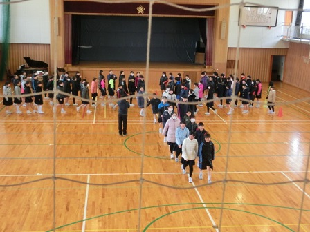 相変わらず寒い日が続いていますが雪解けが進み、運動場の土がようやく見えるようになりました。6年生を送る会に向けて追い込んでいる各学年の練習を、ネタバレしない程度に取材をと思っているのですが、なかなか通しリハーサルを見せてくれない3年生。出し物は「外小スター~エレクトリヤルパレード・サクラ咲け~」で、リズム縄跳びです。大縄に短縄、音楽に合わせて飛べるように特訓していました。できあがりが楽しみです。
