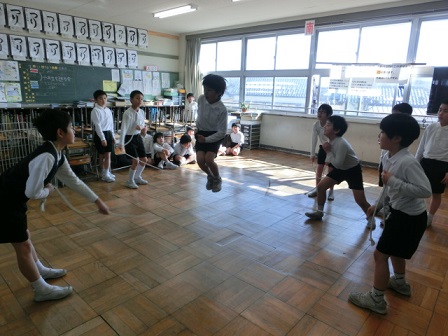 いよいよ明日は6年生を送る会。どの学年もより良く仕上げようと追い込んでいました。3年生は、縄跳びの様々な技を披露して外小スターになろうと、猛特訓を行っていました。