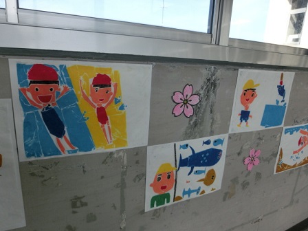 そうそう、1年生の紙版画が通路に飾られました。とっても上手な版画です。