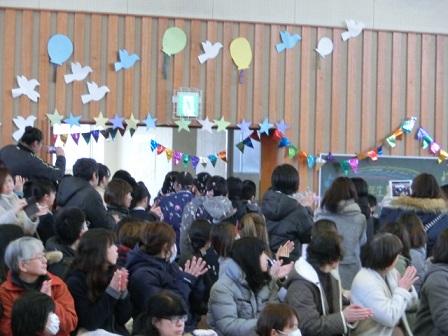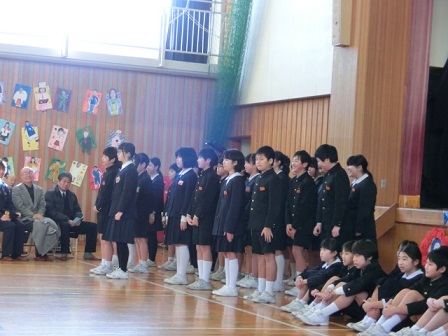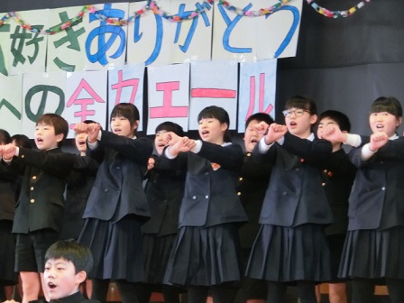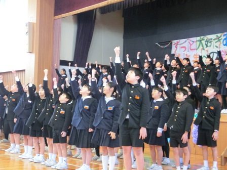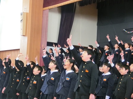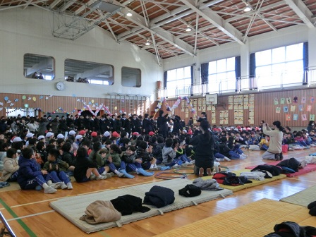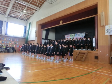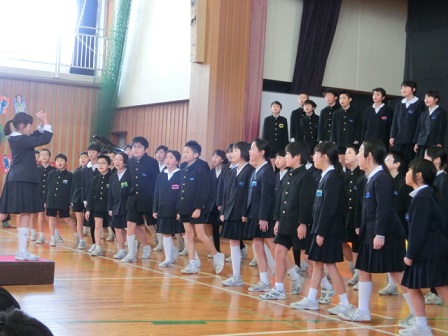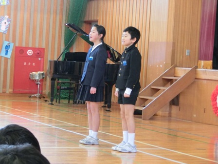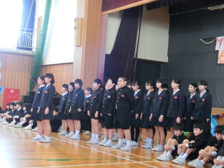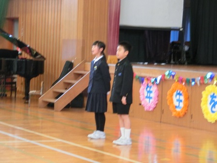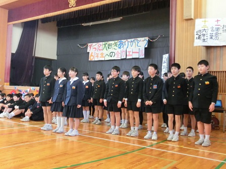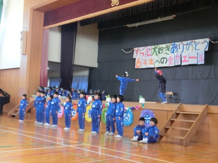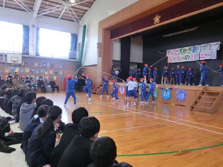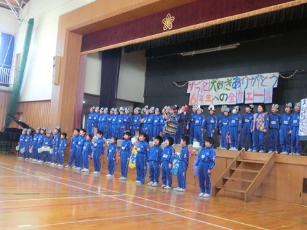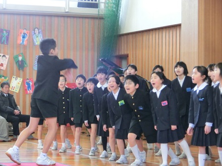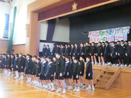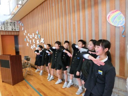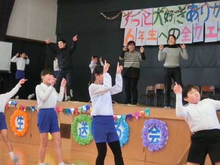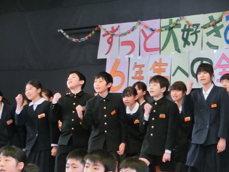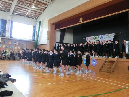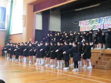 在校生の気持ちに応えようと、最後は6年生のお礼の歌。自分たちで考えた振り付けで、いとも簡単に?さらりときれいな歌声を響かせ歌って踊ってくれました。さすが6年生!