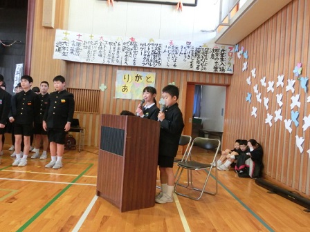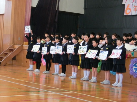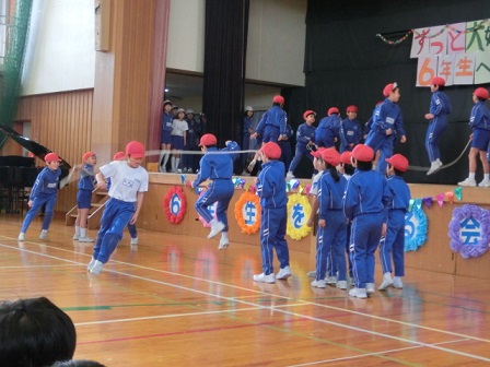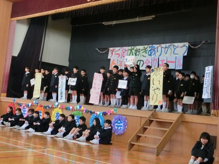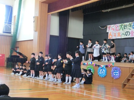 トップバッターは4年生。「6年生に贈る言葉」自分たちで見つけた6年生の良さとたくさんの先生方に聞いた6年生の良さを紹介しました。そして最後に歌のプレゼント。初めからじ~んと来てしまいました。