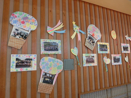 4・2・1・3年生が終わった後は休憩タイム、そして休憩が終わる頃に、6年生の思い出の写真がスライドショーで紹介されました。6年生が「わぁ~」と声を上げながら、笑顔で幼いときの写真を楽しんでいました。そして後半開始。