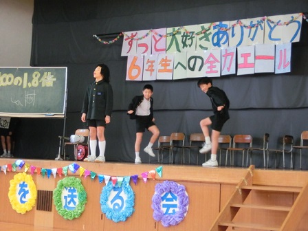 5年生が頑張っていました。6年生を送る会の企画・運営を全て担っている5年生。このことが、学校全体での6年生への感謝の気持ちを大きくさせると共に、自分自身をもまた大きく成長させていくことになります。