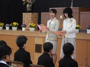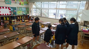 朝、登校した1年生に対して玄関や教室でお世話をする6年生の姿を見かけます。相手が何に困っているのかを思いやり行動できる6年生、お世話してくれた事に対して素直に「ありがとう」が言える1年生、こんな温かな雰囲気が学校全体に広まることを期待しています。