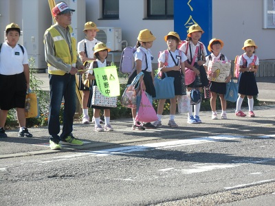 今学期も見守り隊やPTAの方々に見守られての登校です。きちんとあいさつできたかな?
