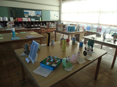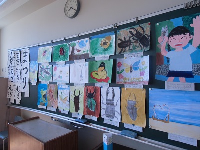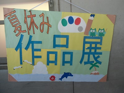 夏休みの作品展が5日(水)まで15:00~17:00、2階の特別教室で行っています。