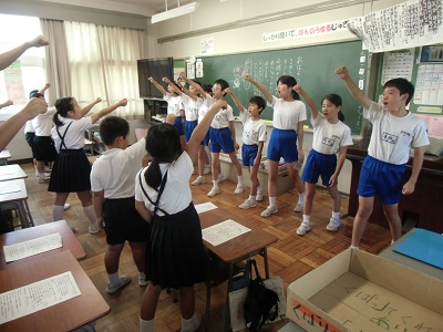 応援団と6年生全員が各クラスに行き練習をリードします。