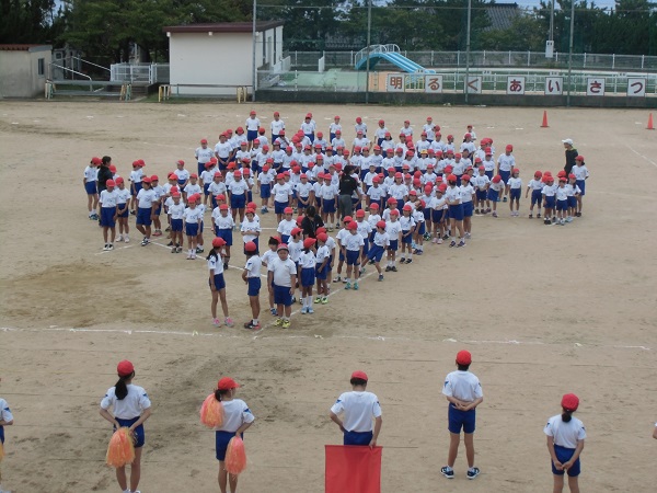 初めて運動場に並ぶので、まだ文字がはっきりしません。