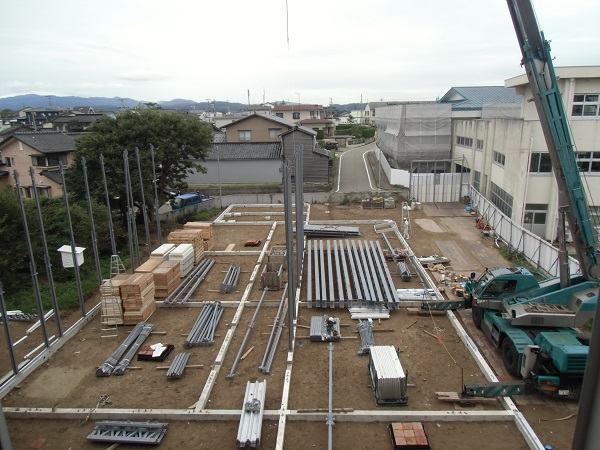 仮設校舎建設順調です