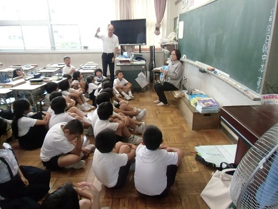 明日の宿泊体験学習の前に白山麓少年自然の家の講師の方が、お話をしに来校されました。