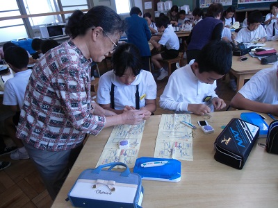 そのヘチマを使って家庭室で何かをしていたので覗いてみました。