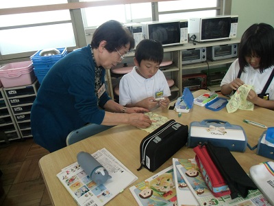 全クラスでの朝の読み聞かせ活動、4・5年生の書写指導、5年生の裁縫指導です。