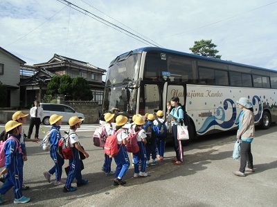 今朝、3つの学年がバス遠足・社会見学に出発して行きました。