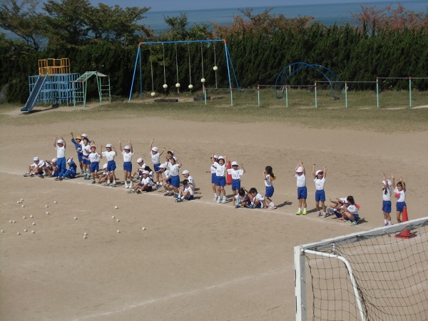 今年は、運動場が駐車場で狭いため、高学年と低学年の行う日を分けて実施しています。