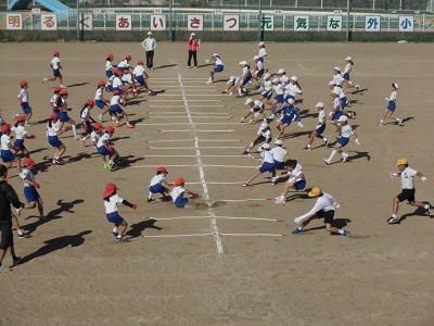今年は、運動場が駐車場で狭いため、高学年と低学年の行う日を分けて実施しています。