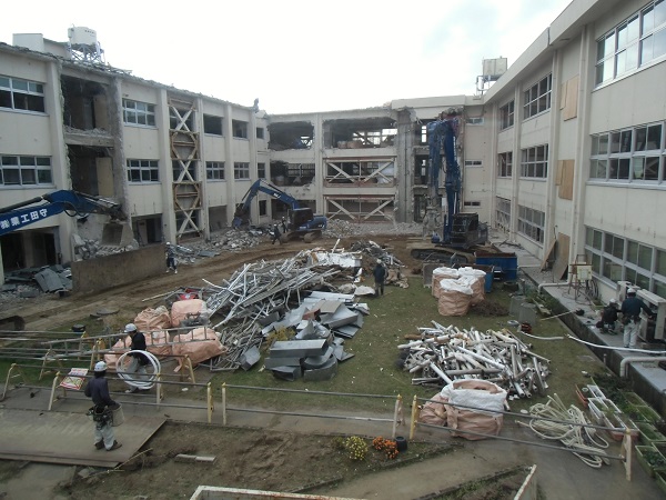 工事の音や風の音の中でも、5年生は集中してお話を聞いていました。