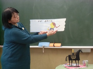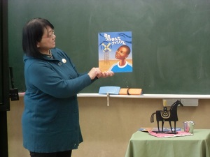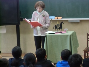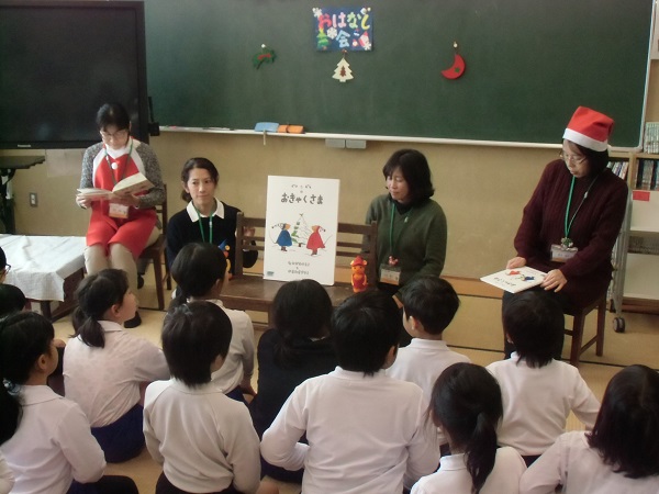今日の昼休み、図書ボランティアさんによるクリスマスお話会がありました。