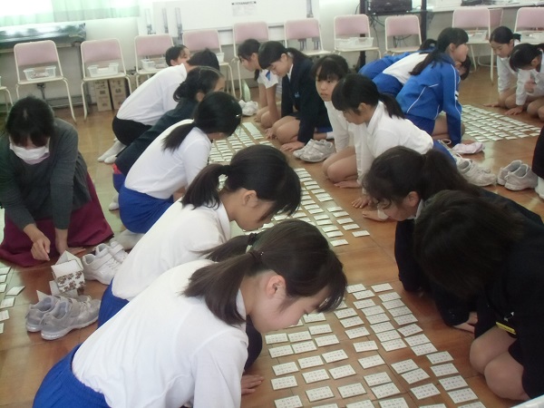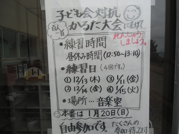 子ども会対抗かるた大会に向けて、練習を呼びかけたところ、30人ほどの高学年が集まりました。