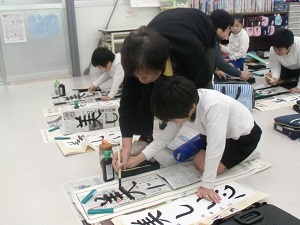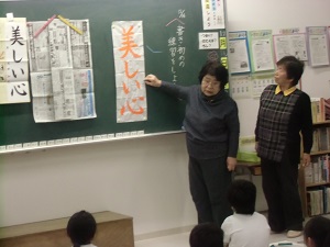 3年生のかきぞめ指導に3人の地域の先生に来ていただきました。
