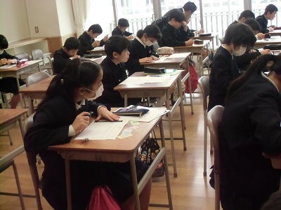 6年生は直接中学校に登校し、1、2限の授業を受けました。