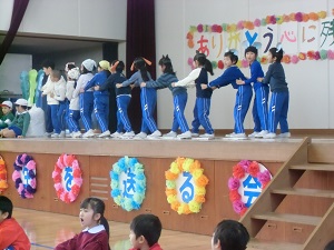 1年生から5年生までがこの日に向けて飾りやプレゼントの作成、出し物の練習をしてきました。