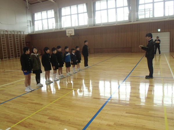 毎日の給食時間前に各クラスから代表者1名が体育館に集まり練習しています。