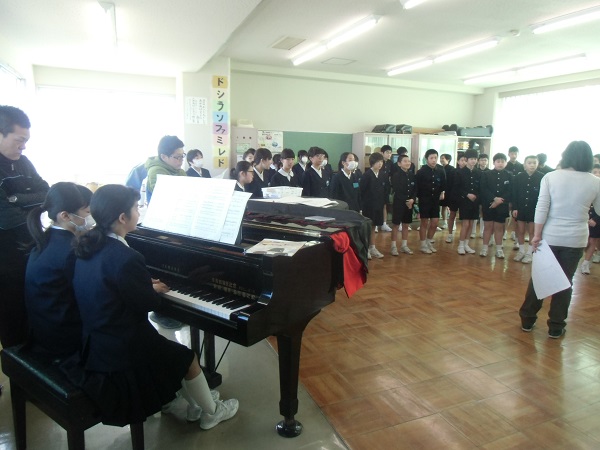 在校生は、各クラスから代表者が出て、門出の言葉の練習をしています。