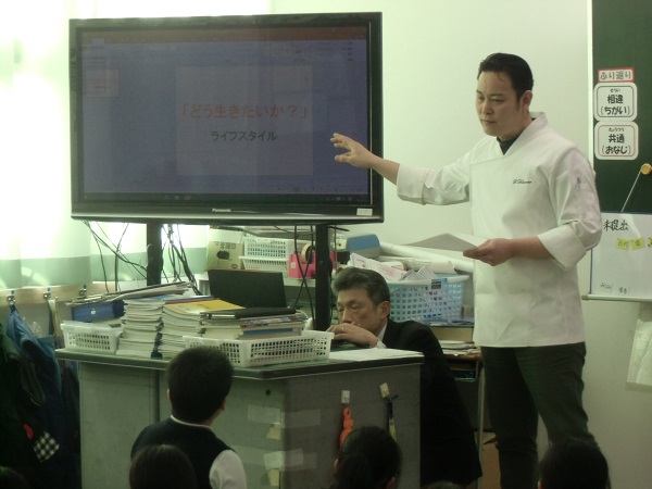 6年生の総合の授業で、二人の職業人の方をお招きし、今の職業に就くまでの経験談や、今、大切にしていることなどについてお話をして頂きました。