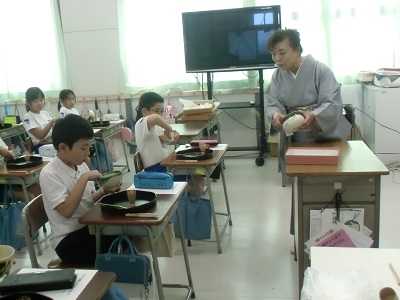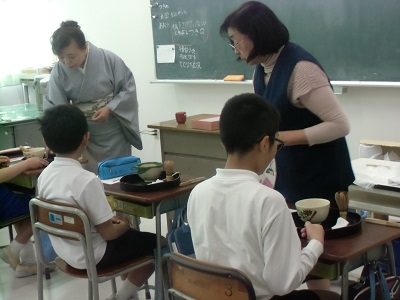 茶道クラブでは早速、地域の加藤先生の指導で体験をしました。