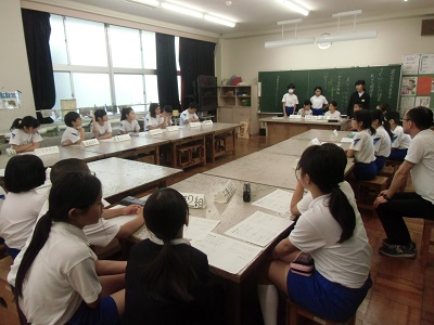自分たちの授業をレベルアップするために、学年同士で授業を見合っています。