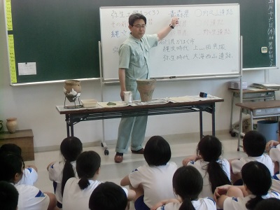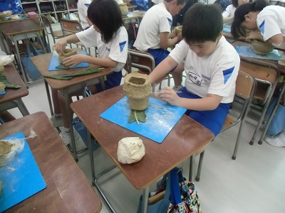 6年生が市の職員の方々に来ていただいて土器づくり体験を行いました。