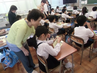 5年生の裁縫の授業に地域の方6名が教えに来て下さいました。