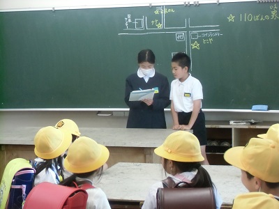 悪天候や不審者等の対応として集団下校の訓練を行いました。