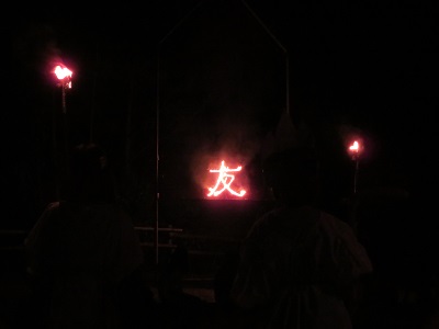 夜の暗闇に浮かび上がったのは「友」の火文字です。活動を通して友達との絆を深めることができました。