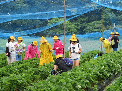 2日目は雨模様でしたが追跡ハイクとイチゴ狩りは予定通り行えました。