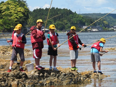 エサのオキアミを付けるのに苦労している児童もいましたが友達に手伝ってもらいながら準備できました。
