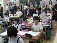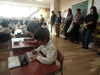 新校舎になって初めての授業参観でしたが、廊下が広く窓も広いので、保護者の皆様も、