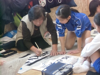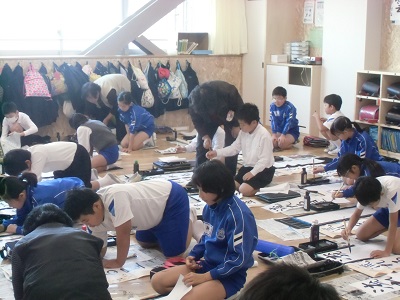 4年生の書初め練習に3人の地域の方々に来校頂き、指導して下さいました。