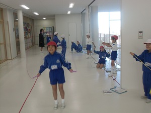 冬場の体力づくりとして縄跳びを行っています。