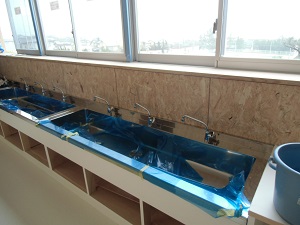 | 新しい作業机が並べられた図工室 | 洗い場もたくさんあります |