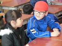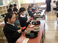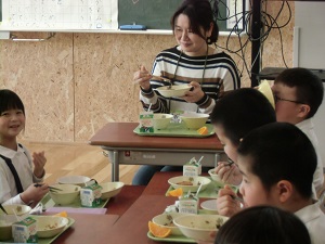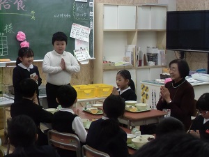 今日は24名の皆さんが,1年生から4年生の教室に分かれ各教室で会食をしました。