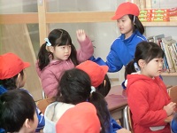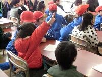 その後、教室で「これなんでしょうくいず」をしました。手がしっかり挙り、はきはきと応える年長さんの姿が見られました。