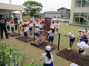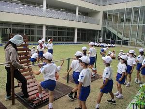 2年生の体育では、鉄棒をしています。