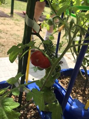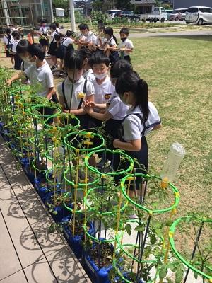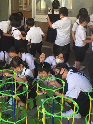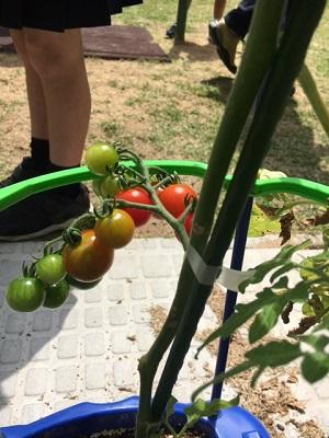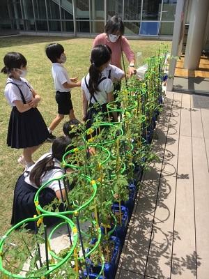 2年生が育てているミニトマトが、大きく生長しています。