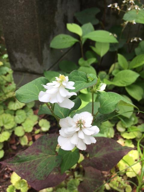 一つは、ホタルブクロ。もう一つは、八重のドクダミです。