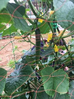 トマトは、カラスに食べられたりしましたが、キュウリは元気に育っています。