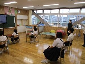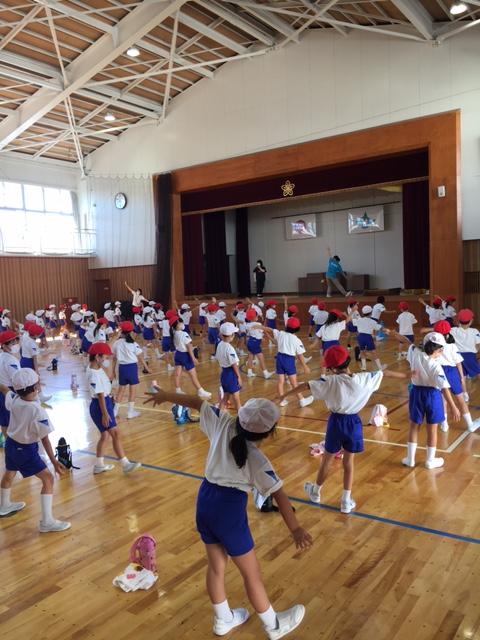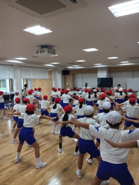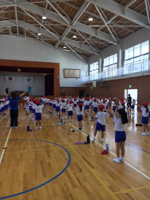 今日は、2つの子ども園の園児が、1・2年生のダンス練習を見に来てくれました。