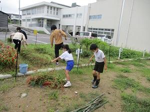 鍬で刈る体験が初めての児童も多くいましたが、みんな一生懸命頑張っていました。