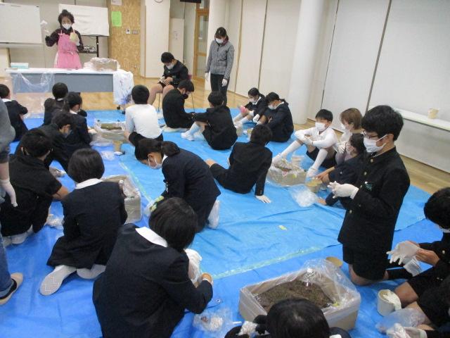 今日の5・6限目に、6年生がヒヤシンスの球根を植えました。